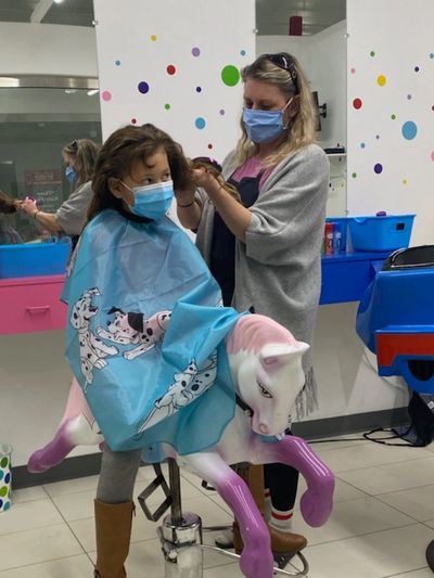 Our stylists are very experienced to work with ALL kids, including those who may not be comfortable in new places, may not be able to sit still in a chair for long, may not like noise, or may find the whole idea of a stranger with scissors frightening.